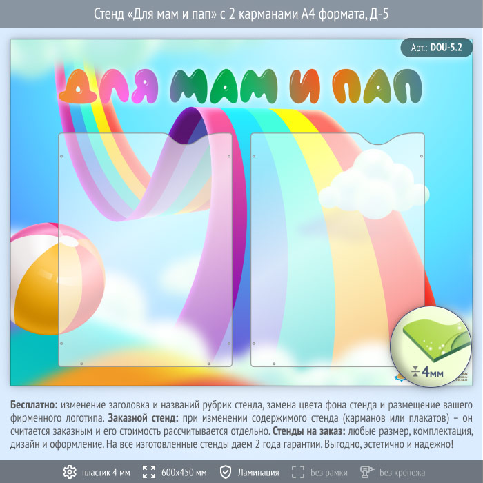 Стенд «Для мам и пап» с 2 карманами А4 формата (DOU-5.2) в Черкесске купить