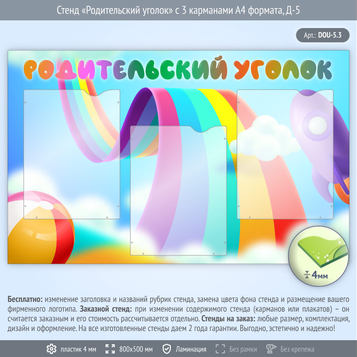 Стенд «Родительский уголок» с 3 карманами А4 формата (DOU-5.3) в Черкесске купить