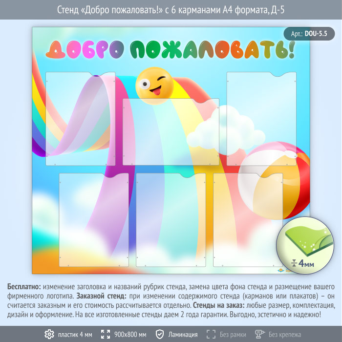 Стенд «Добро пожаловать!» с 6 карманами А4 формата (DOU-5.5) в Черкесске купить
