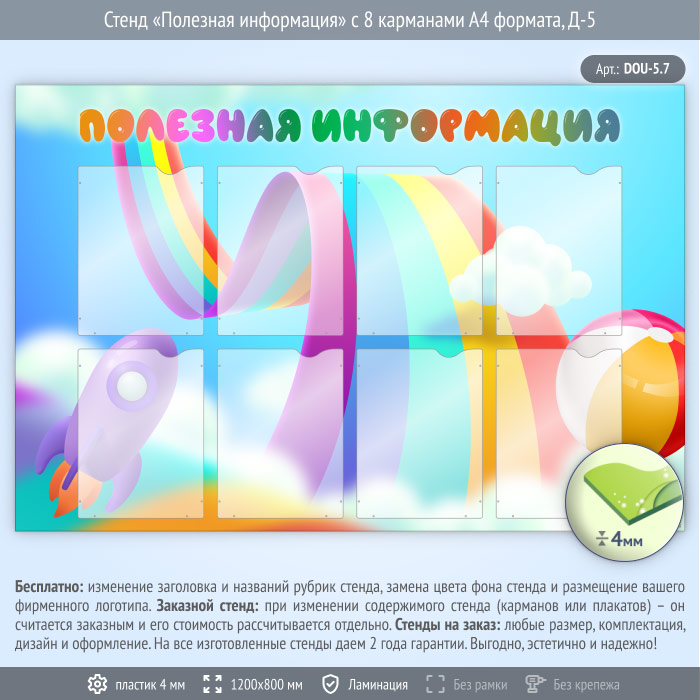 Стенд «Полезная информация» с 8 карманами А4 формата (DOU-5.7) в Черкесске купить