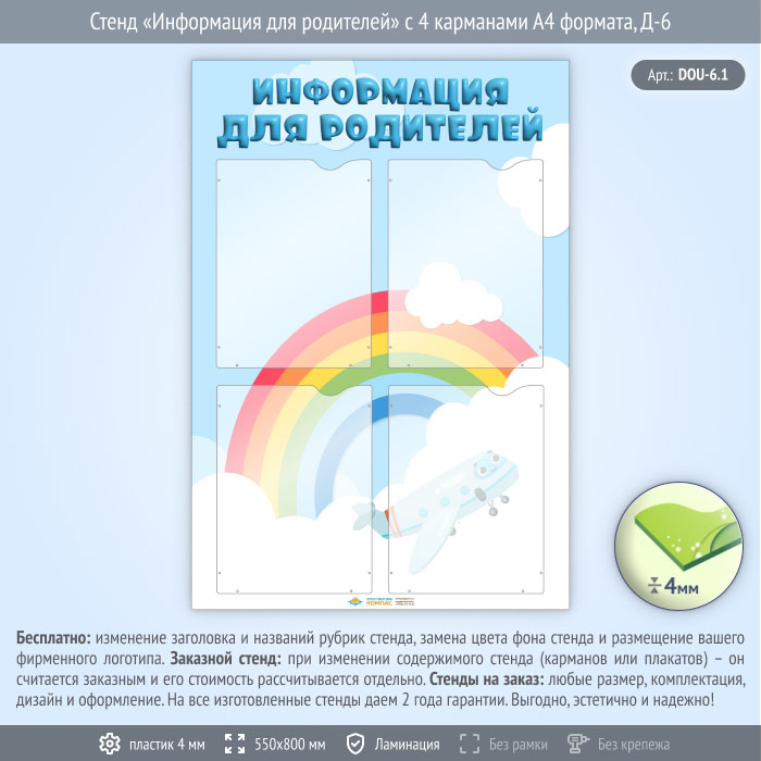 Стенд «Информация для родителей» с 4 карманами А4 формата (DOU-6.1) в Черкесске купить
