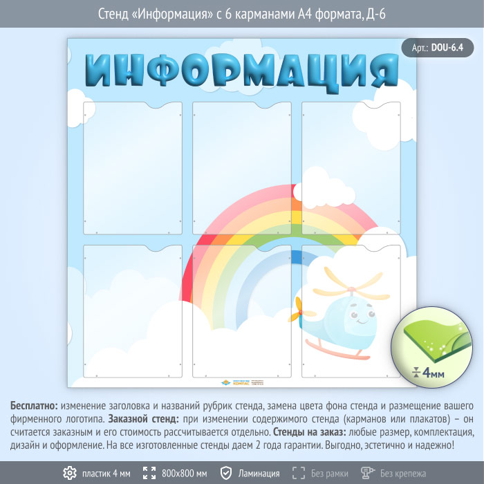 Стенд «Информация» с 6 карманами А4 формата (DOU-6.4) в Черкесске купить