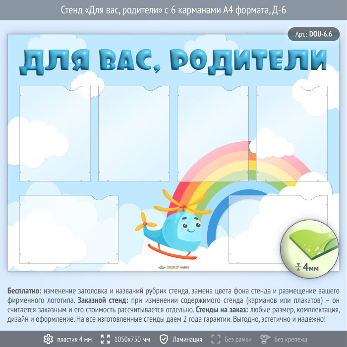 Стенд «Для вас, родители» с 6 карманами А4 формата (DOU-6.6) в Черкесске купить