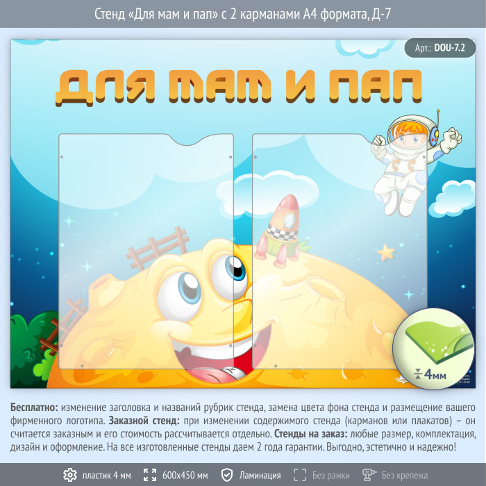 Стенд «Для мам и пап» с 2 карманами А4 формата (DOU-7.2) в Черкесске купить