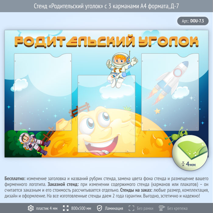 Стенд «Родительский уголок» с 3 карманами А4 формата (DOU-7.3) в Черкесске купить