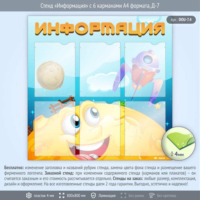 Стенд «Информация» с 6 карманами А4 формата (DOU-7.4) в Черкесске купить