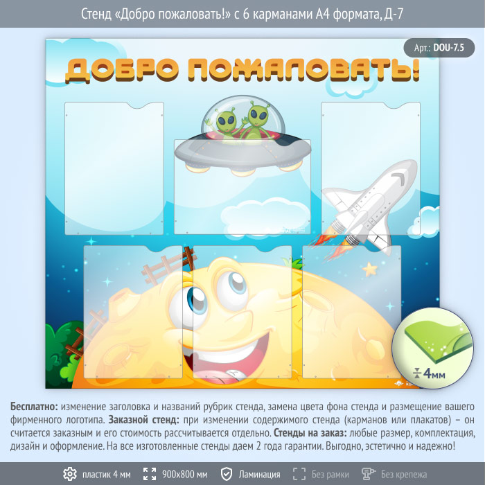 Стенд «Добро пожаловать!» с 6 карманами А4 формата (DOU-7.5) в Черкесске купить