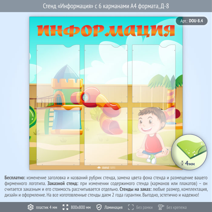 Стенд «Информация» с 6 карманами А4 формата (DOU-8.4) в Черкесске купить