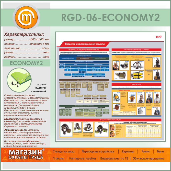Стенд «Средства индивидуальной защиты» (RGD-06-ECONOMY2) в Черкесске купить
