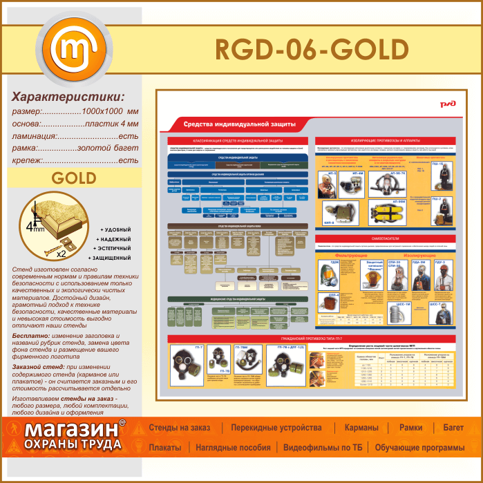 Стенд «Средства индивидуальной защиты» (RGD-06-GOLD) в Черкесске купить