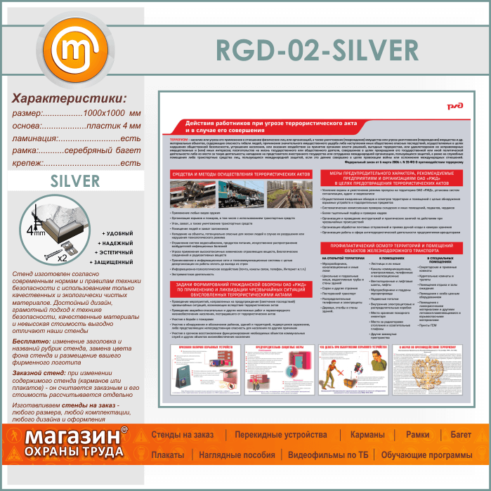 Стенд «Действия работников при угрозе совершения террористического акта и в случае его совершения» (RGD-02-SILVER) в Черкесске купить
