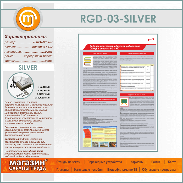 Стенд «Рабочая программа обучения работников СКЖД в области ГО и ЧС» (RGD-03-SILVER) в Черкесске купить