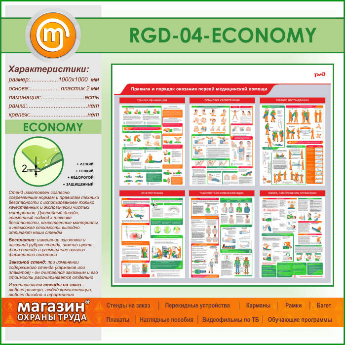 Стенд «Правила и порядок оказания первой медицинской помощи» (RGD-04-ECONOMY) в Черкесске купить
