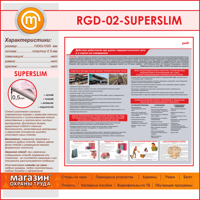 Стенд «Действия работников при угрозе совершения террористического акта и в случае его совершения» (RGD-02-SUPERSLIM) в Черкесске купить