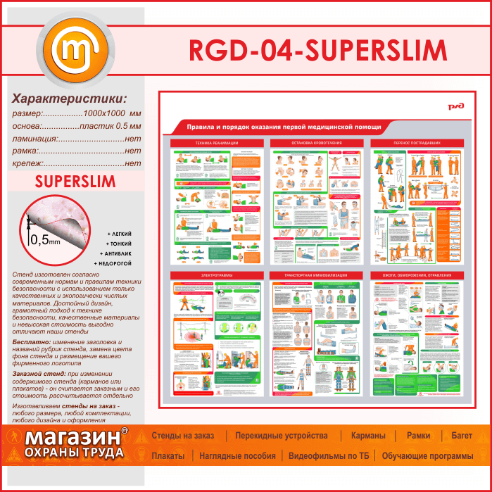 Стенд «Правила и порядок оказания первой медицинской помощи» (RGD-04-SUPERSLIM) в Черкесске купить