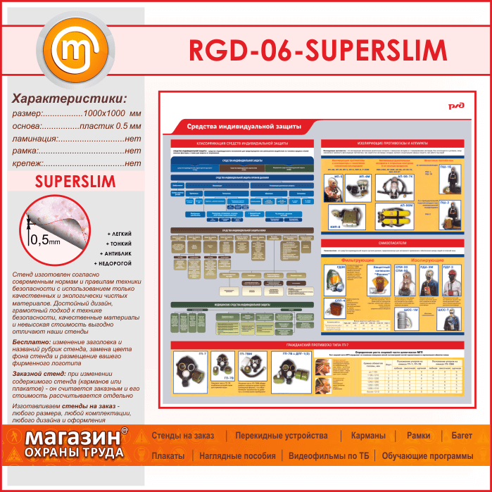 Стенд «Средства индивидуальной защиты» (RGD-06-SUPERSLIM) в Черкесске купить