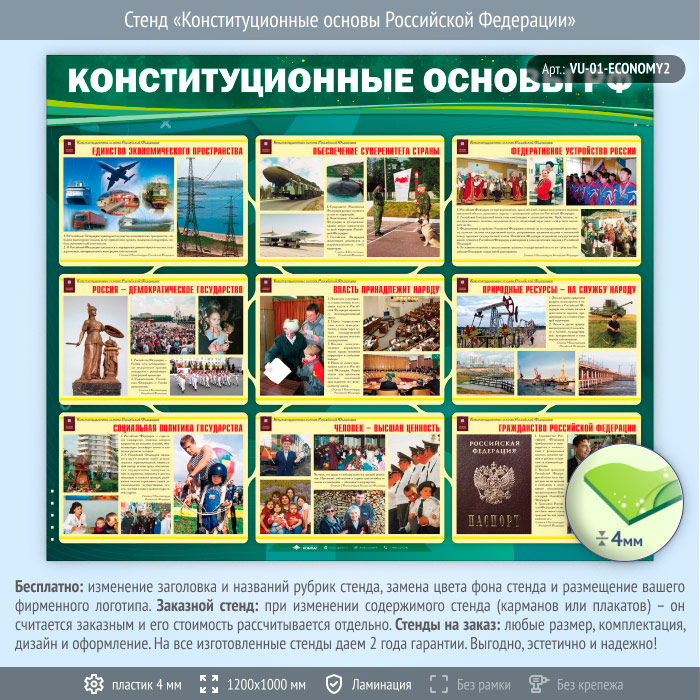 Стенд «Конституционные основы Российской Федерации» (VU-01-ECONOMY2) в Черкесске купить