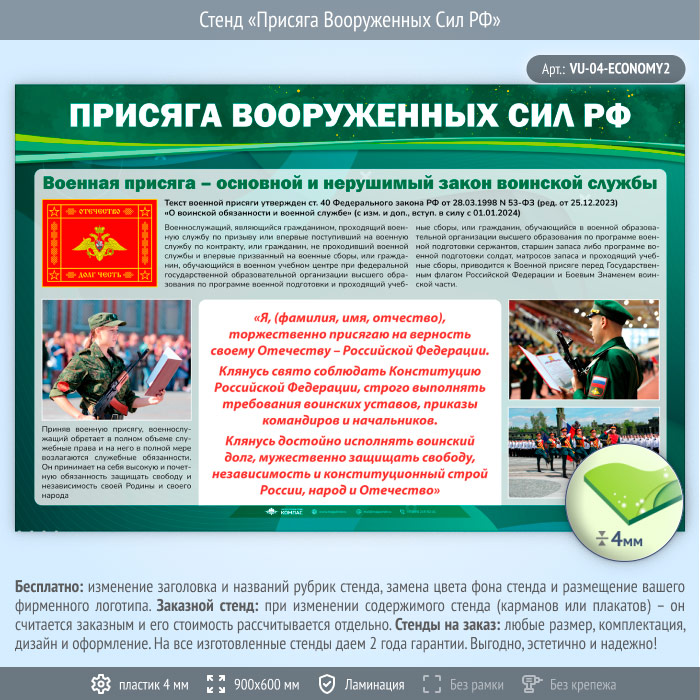 Стенд «Присяга Вооруженных Сил РФ» (VU-04-ECONOMY2) в Черкесске купить