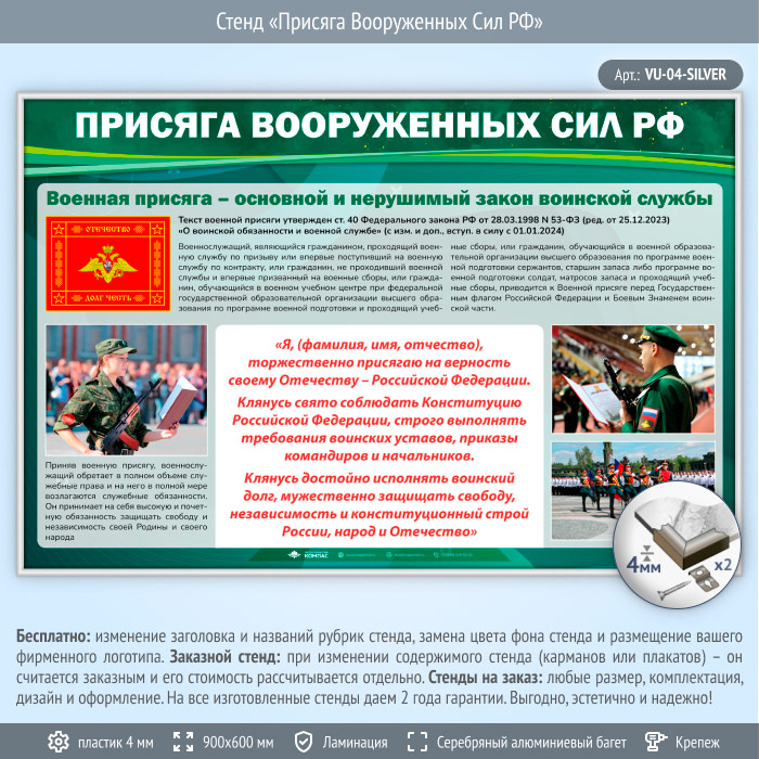 Стенд «Присяга Вооруженных Сил РФ» (VU-04-SILVER) в Черкесске купить