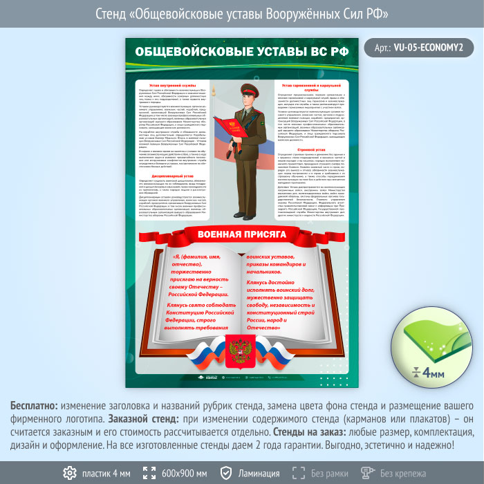 Стенд «Общевойсковые уставы Вооружённых Сил РФ» (VU-05-ECONOMY2) в Черкесске купить