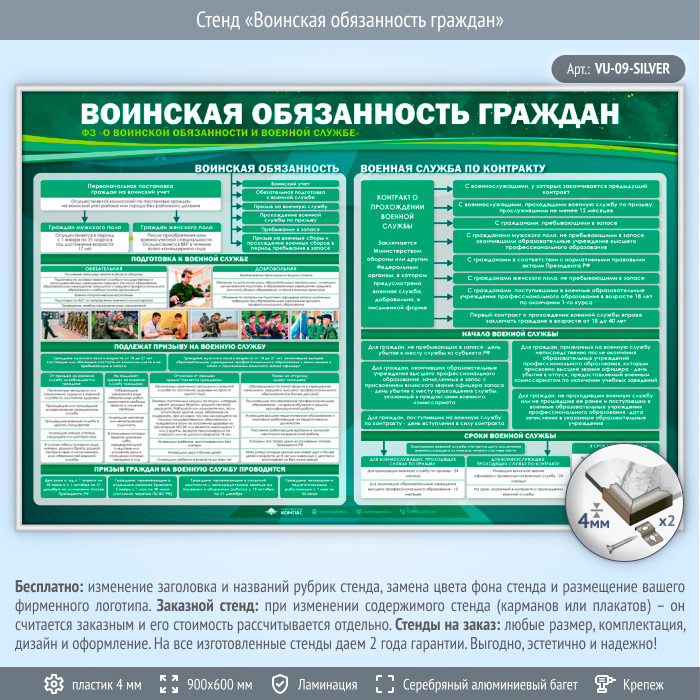 Стенд «Воинская обязанность граждан» (VU-09-SILVER) в Черкесске купить