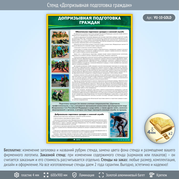 Стенд «Допризывная подготовка граждан» (VU-10-GOLD) в Черкесске купить