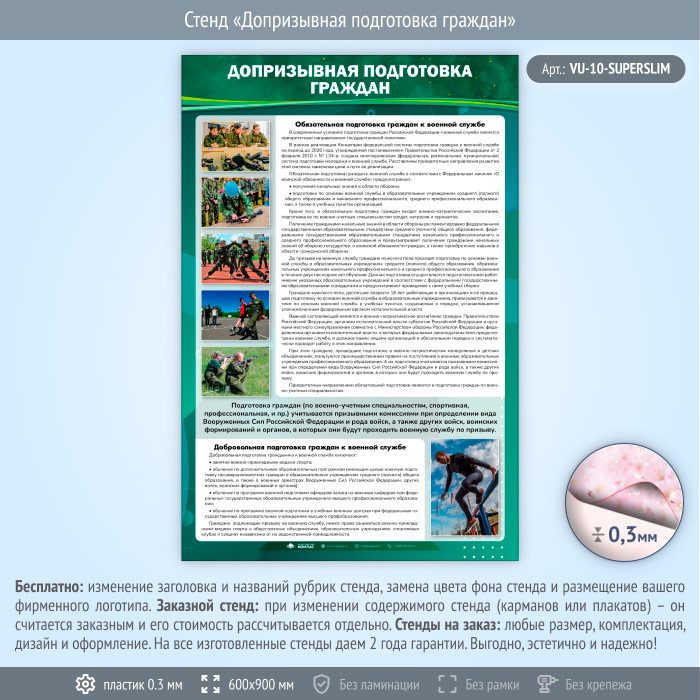 Стенд «Допризывная подготовка граждан» (VU-10-SUPERSLIM) в Черкесске купить