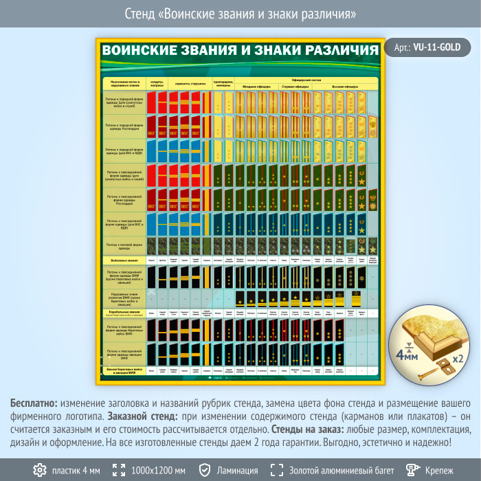 Стенд «Воинские звания и знаки различия» (VU-11-GOLD) в Черкесске купить
