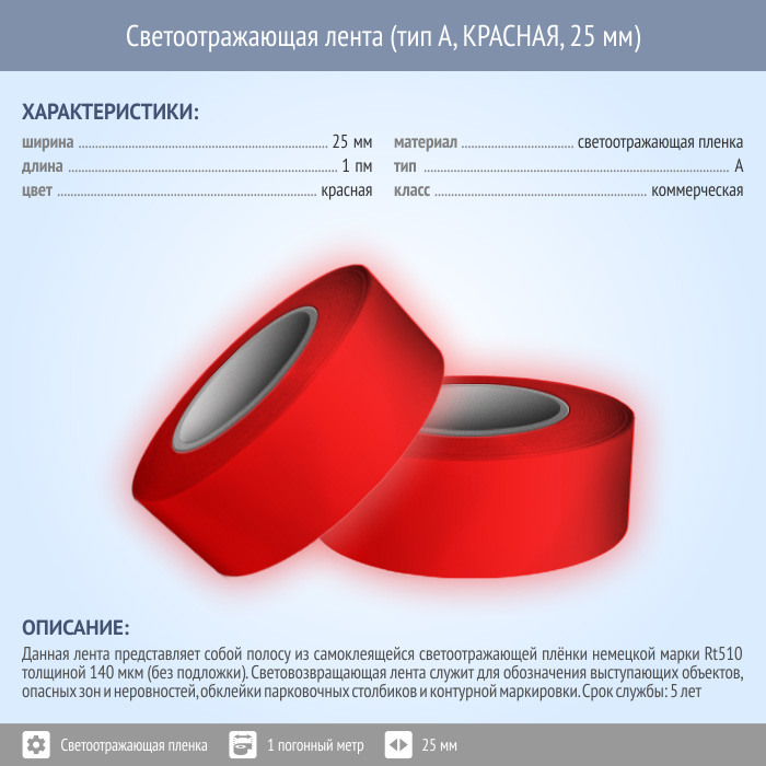 Светоотражающая однородная лента (тип А, КРАСНАЯ, 25 мм х 1 п.м.) в Черкесске купить
