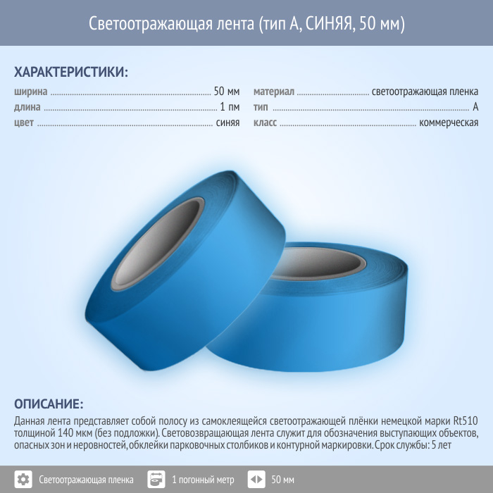 Светоотражающая однородная лента (тип А, СИНЯЯ, 50 мм х 1 п.м.) в Черкесске купить