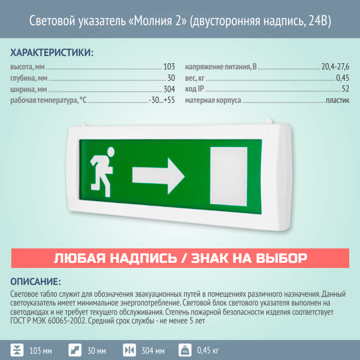 Световой указатель Молния 2 (двусторонняя надпись, 12В) в Черкесске купить