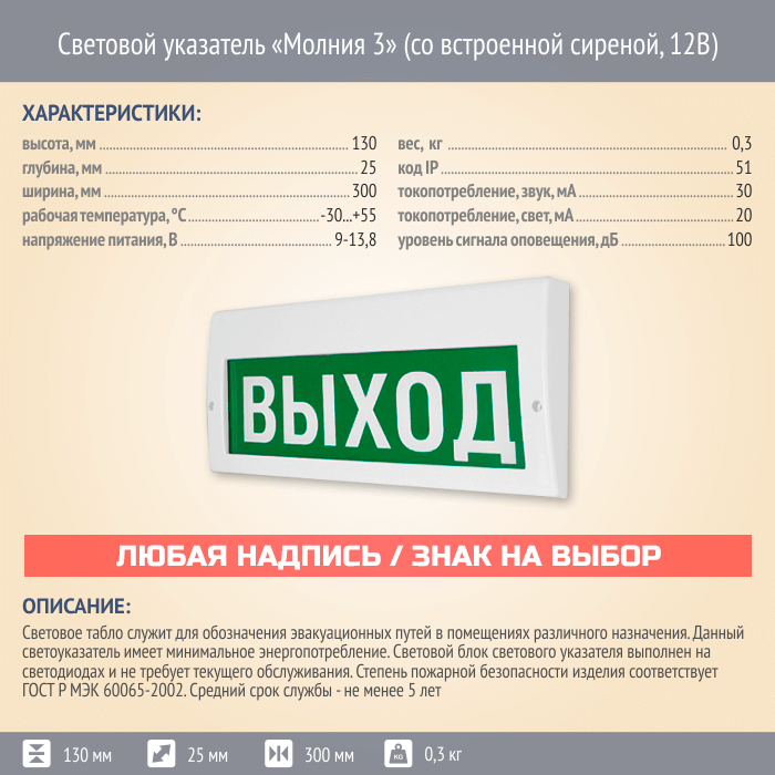 Световой указатель Молния 3 (со встроенной сиреной, 12В) в Черкесске купить