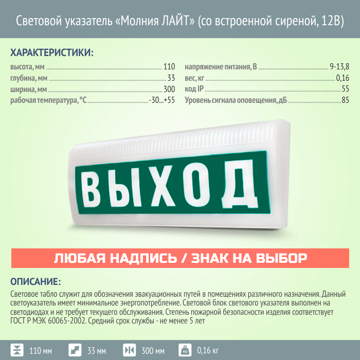 | Модель: | Молния ЛАЙТ (встроенная сирена) | |