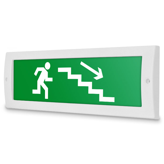 Световое табло «Направление к эвакуационному выходу по лестнице вниз (правосторонний)», Молния (12В) в Черкесске купить