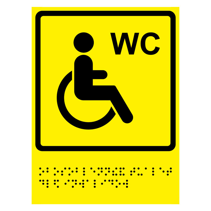 Тактильная пиктограмма «Туалет для инвалидов» с азбукой Брайля, ДС64 (полистирол 3 мм, 200х300 мм) в Черкесске купить