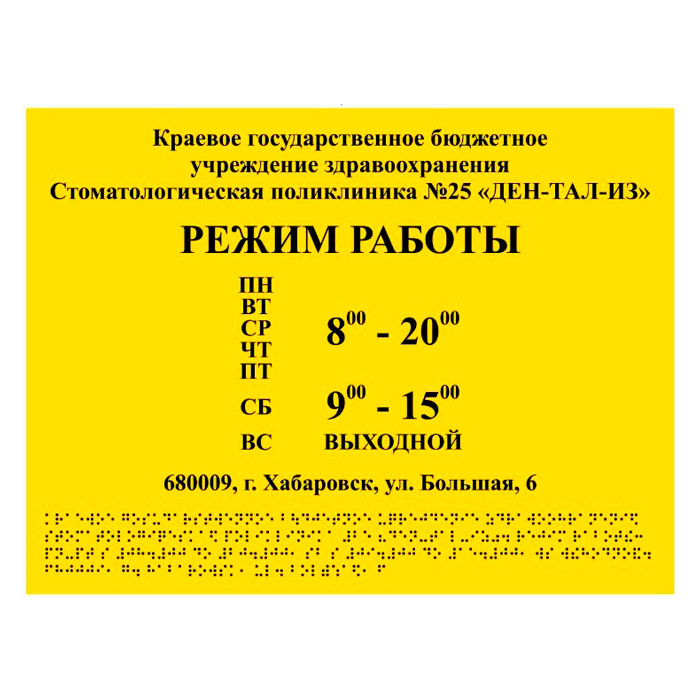 Тактильная вывеска с дублированием азбукой Брайля, ДС10 (полистирол 3 мм, 600х500 мм) в Черкесске купить
