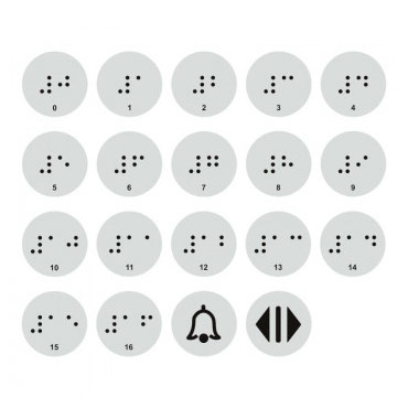 Тактильные наклейки для кнопок лифта с 0 по 16 этаж (набор) , ДС96 (пленка, 20х20 мм, серебристый) в Черкесске купить