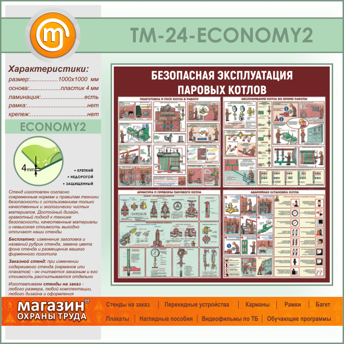 Стенд «Безопасная эксплуатация паровых котлов» (TM-24-ECONOMY2) в Черкесске купить