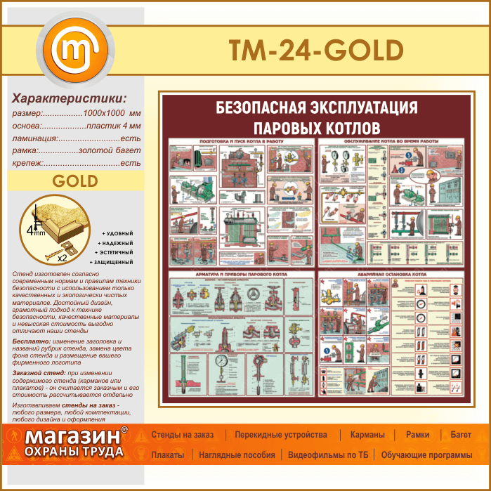 Стенд «Безопасная эксплуатация паровых котлов» (TM-24-GOLD) в Черкесске купить