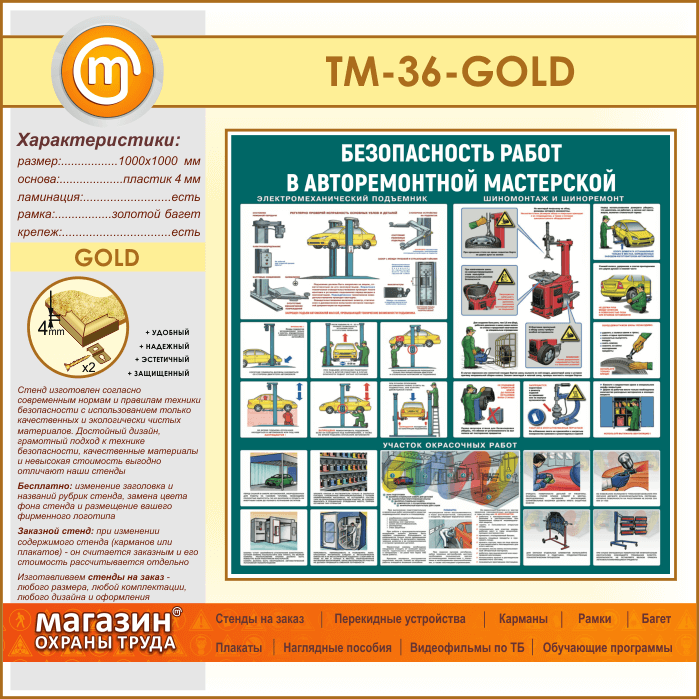Стенд «Безопасность работ в авторемонтной мастерской» (TM-36-GOLD) в Черкесске купить