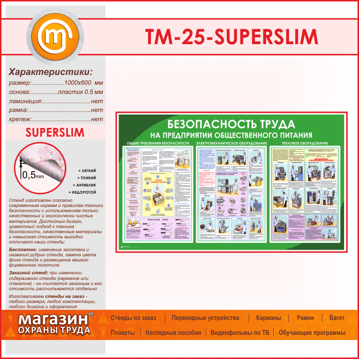 Стенд «Безопасность труда на предприятиях общественного питания» (TM-25-SUPERSLIM) в Черкесске купить