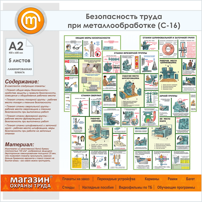 Плакат «Безопасность работ на металлообрабатывающих станках» (С-16, ламинированная бумага, А2, 5 листов) в Черкесске купить