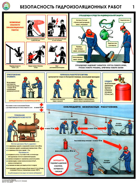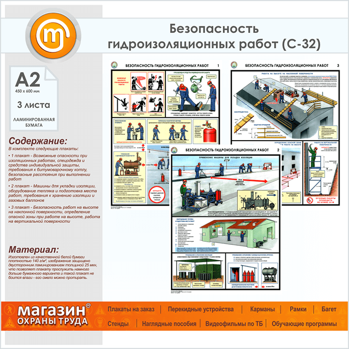 Плакаты «Безопасность гидроизоляционных работ» (С-32, ламинированная бумага, А2, 3 листа) в Черкесске купить