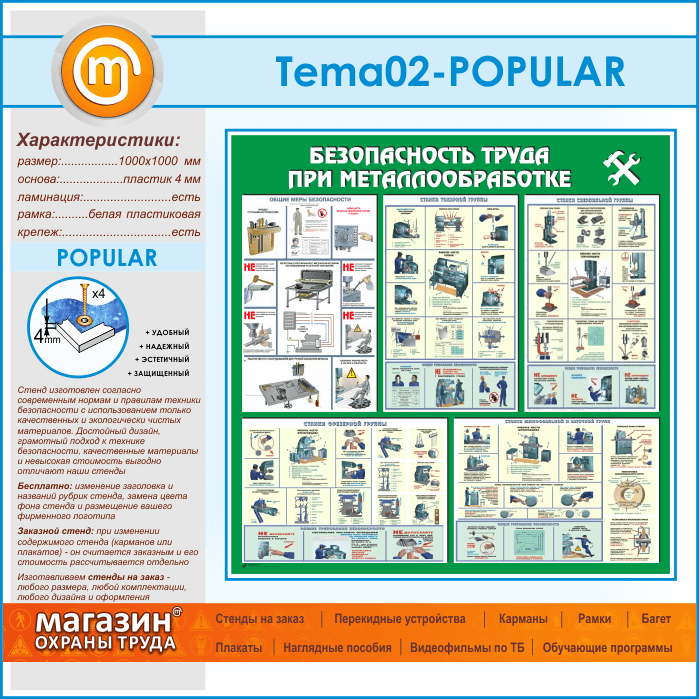 Стенд «Безопасность труда при металлообработке» (TM-02-POPULAR) в Черкесске купить