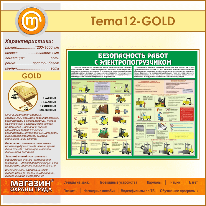 Стенд «Безопасность работ с электропогрузчиком» (TM-12-GOLD) в Черкесске купить