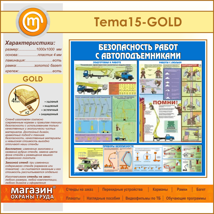 Стенд «Безопасность работ с автоподъемниками» (TM-15-GOLD) в Черкесске купить