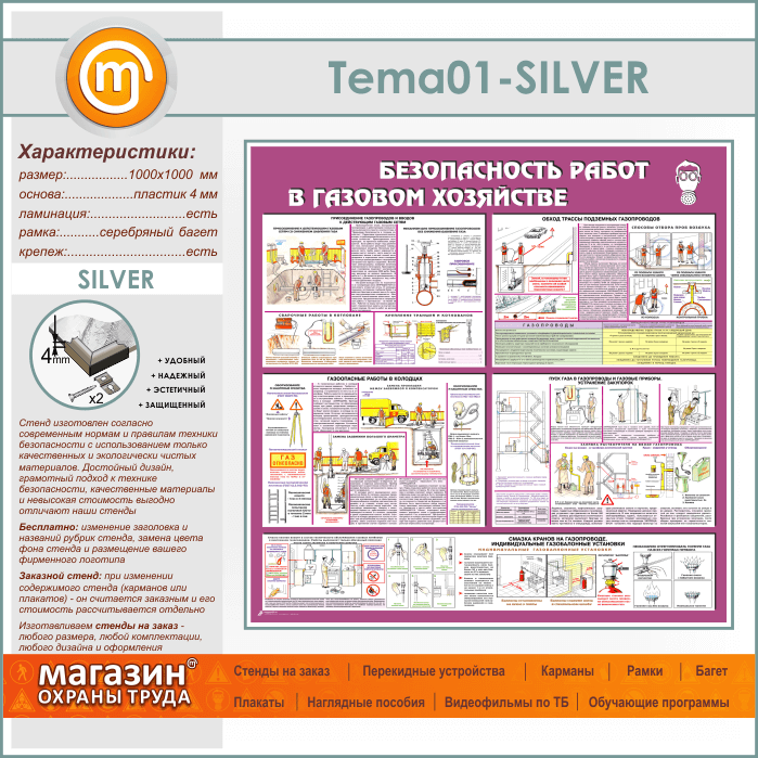 Стенд «Безопасность работ в газовом хозяйстве» (TM-01-SILVER) в Черкесске купить