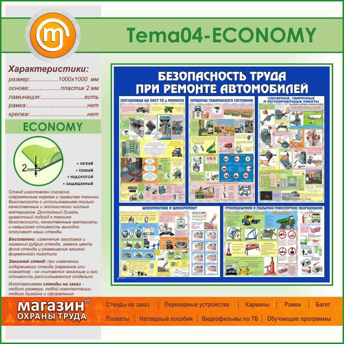 Стенд «Безопасность труда при ремонте автомобилей» (TM-04-ECONOMY) в Черкесске купить
