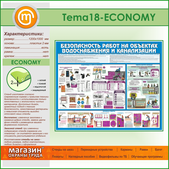 Стенд «Безопасность работ на объектах водоснабжения и канализации» (TM-18-ECONOMY) в Черкесске купить