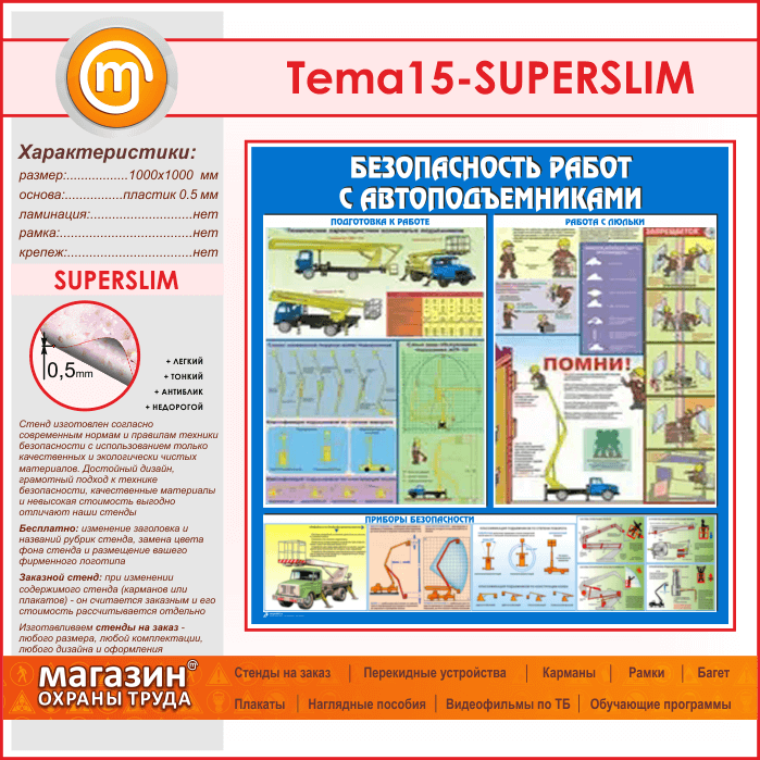Стенд «Безопасность работ с автоподъемниками» (TM-15-SUPERSLIM) в Черкесске купить